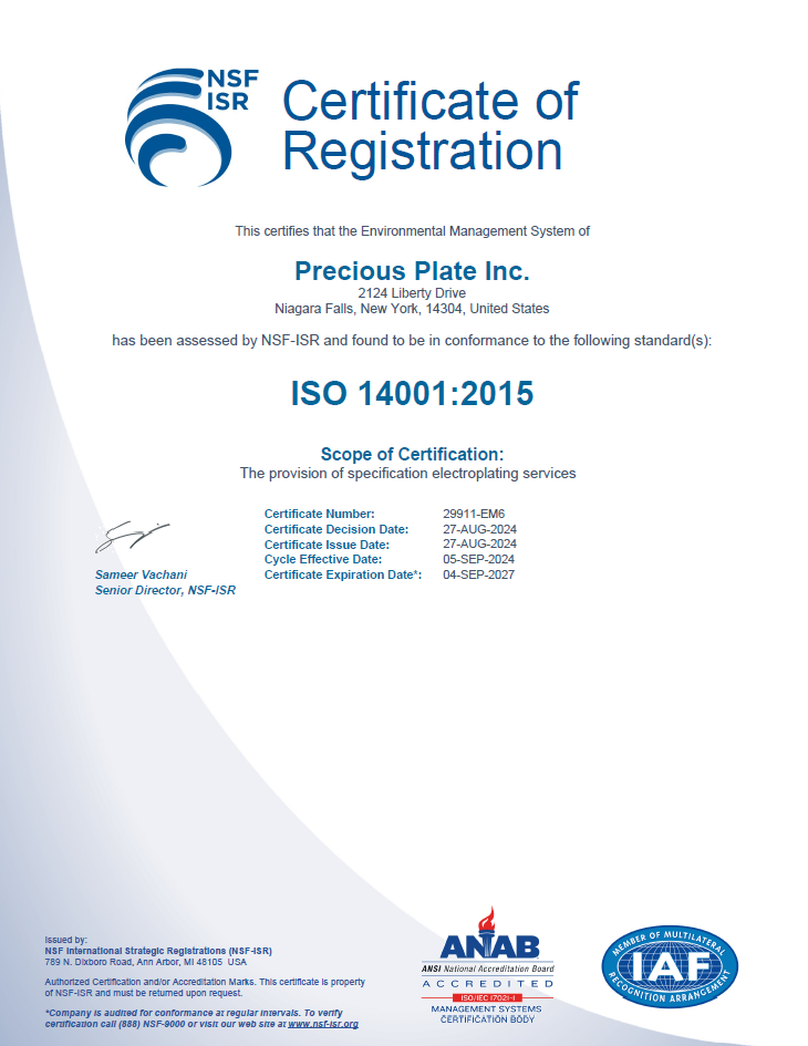 For additional information about Precious Plate’s certifications or how they can benefit your business operations, please visit our contact page. For immediate assistance, call us directly at 716-283-0690. Our team is ready to answer your questions and guide you through how our certified processes elevate quality and sustainability in your supply chain.